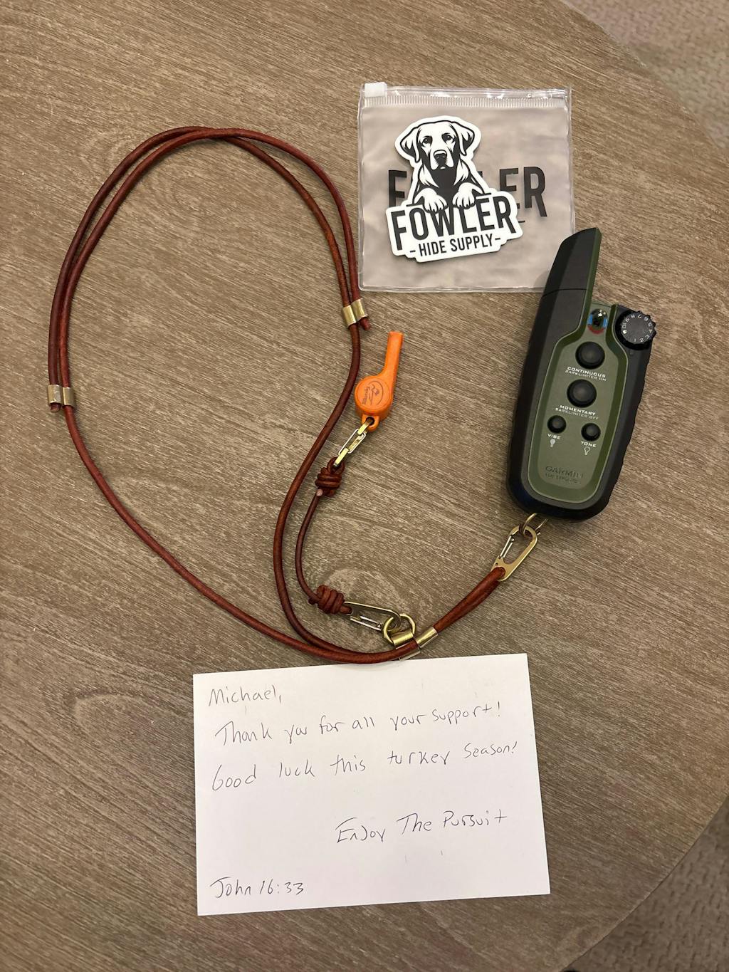 Michael Being able to have the dog remote in hand and whistle in mouth ready to go is great in the field. Lanyard came with a hand written thank you note! Will buy more!